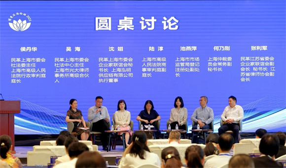 民革上海市委会社法中心主任、上海市光大律师事务所高级合伙人吴海,民革上海市委会企联会秘书长、上海泓明供应链有限公司执行董事沈翊,上海市高级人民法院商事审判庭副庭长陆淳,上海市市场监管局登记注册处副处长池燕萍,上海仲裁委员会常务副秘书长何乃刚,民革江苏省委会企业家联谊会副会长、秘书长,江苏省律师协会副会长张利军,在圆桌讨论中立足中国实际、拓展国际视野、坚持法治思维,深入探讨如何给予民营企业发展更好的法治保障。