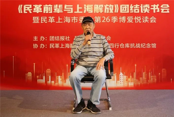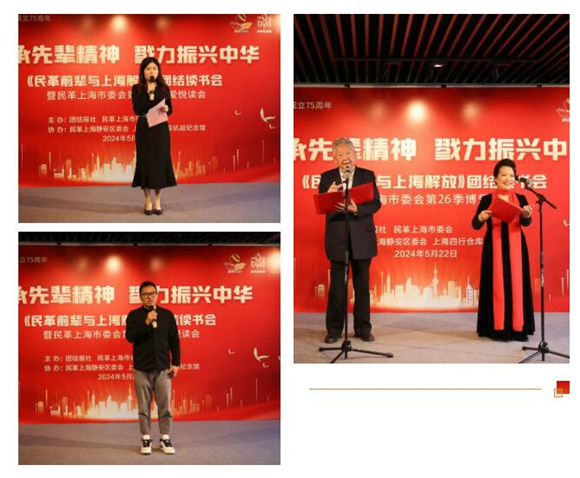 5月22日下午,为庆祝中华人民共和国成立75周年、纪念上海解放75周年,由民革上海市委会与团结报社联合主办,民革静安区委会、上海四行仓库抗战纪念馆协办的“继承先辈精神,勠力振兴中华”团结读书会暨第二十六季博爱悦读会在上海四行仓库抗战纪念馆举行。